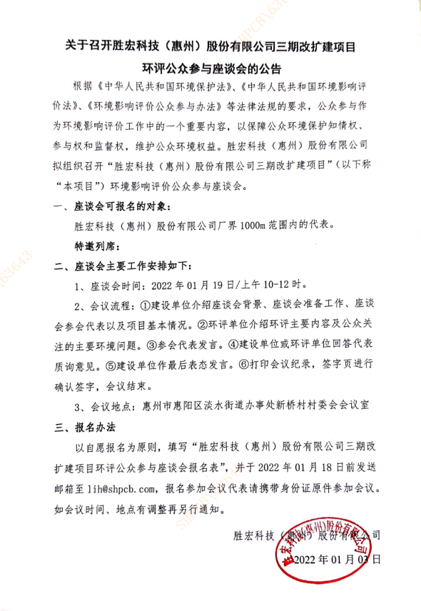關(guān)于召開金年會(集團(tuán))智能科技股份有限公司三期改擴(kuò)建項(xiàng)目環(huán)評公眾參與座談會的公告